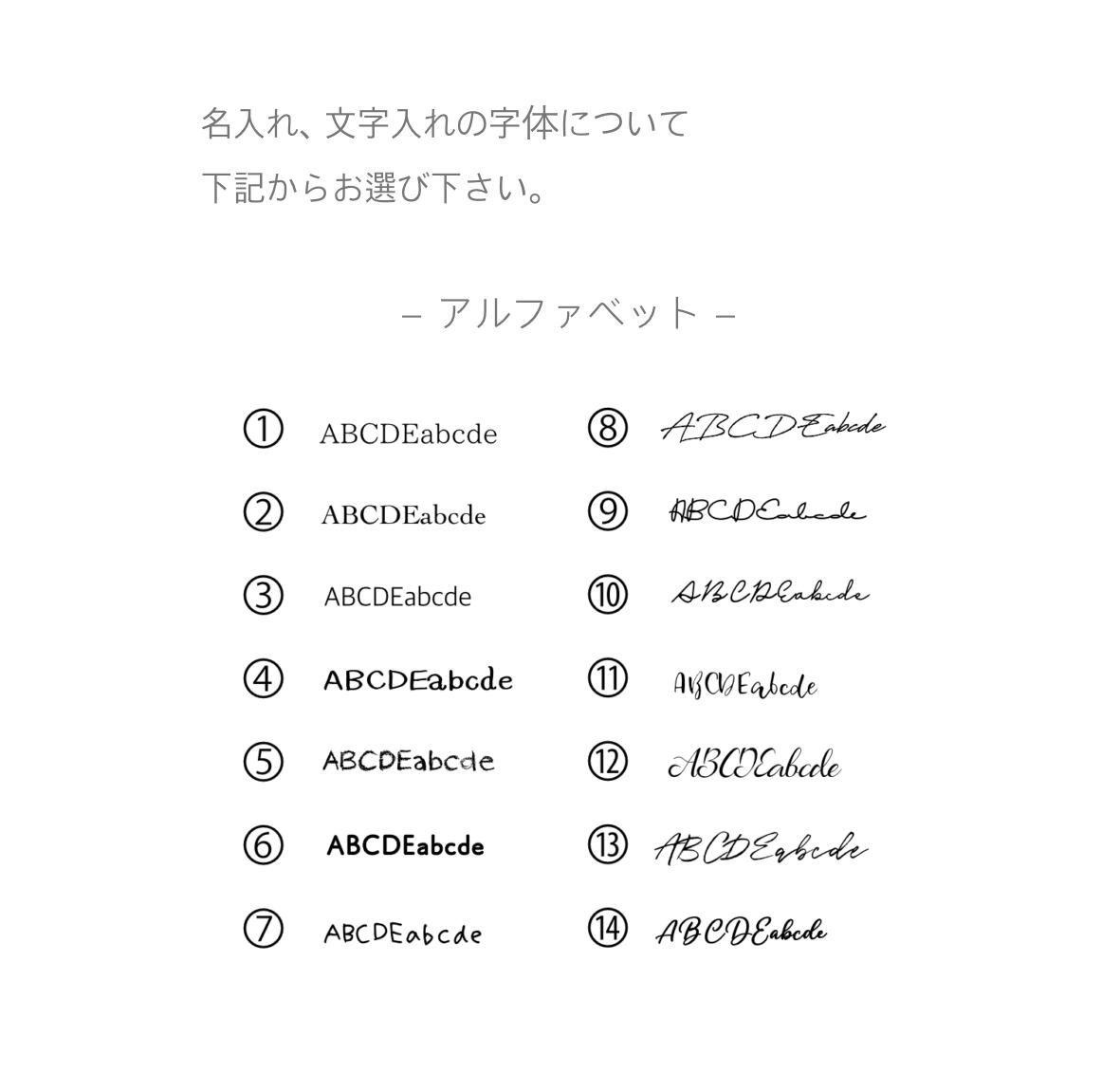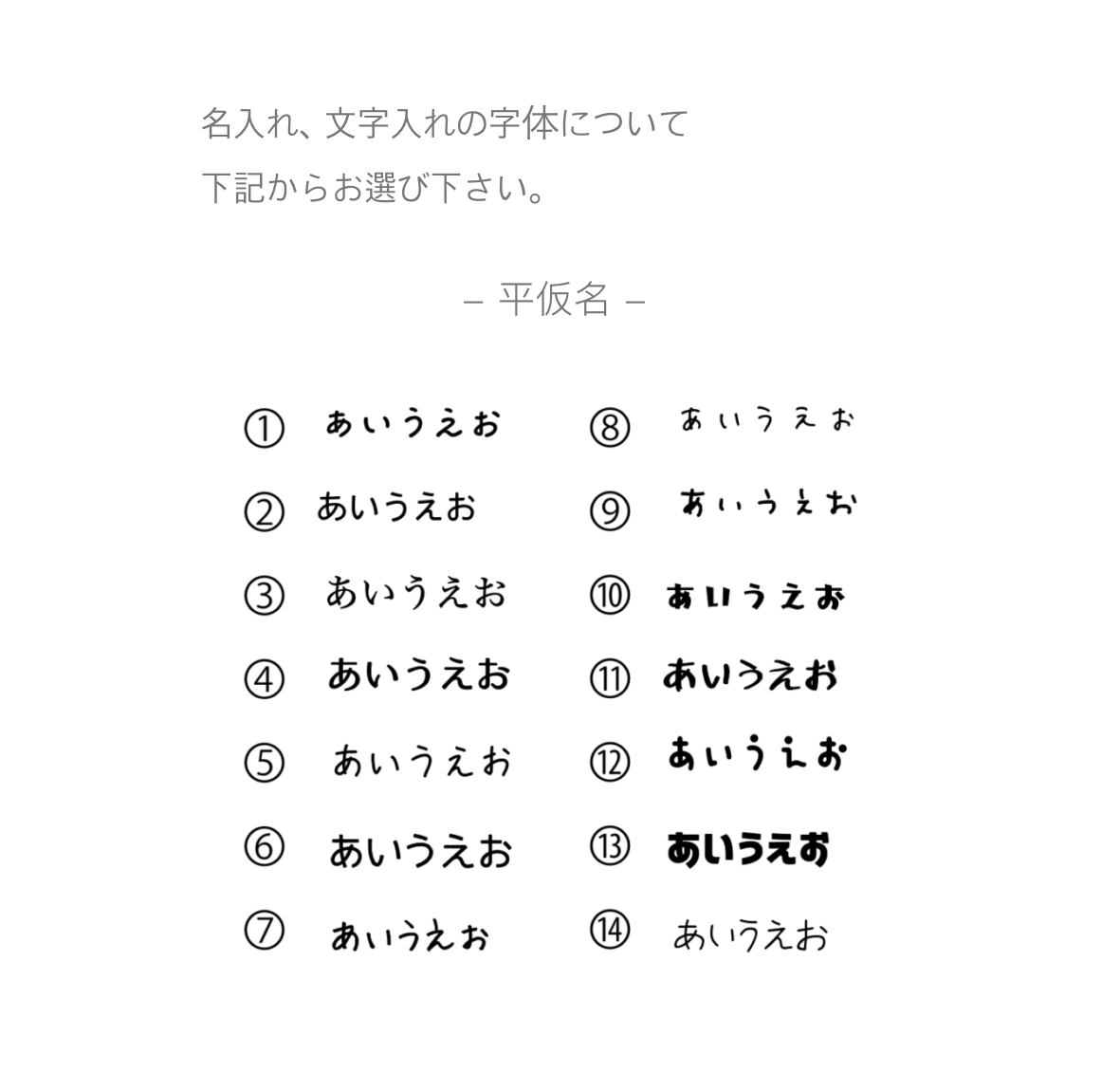 フォントは最後のページよりお選びください。